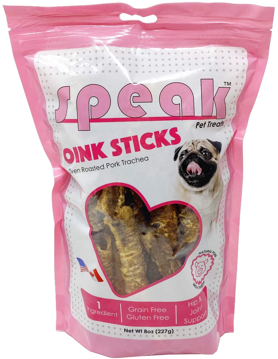 Speak Dog Treats Oink Sticks, Gluten and Grain Free Low Calorie Pork Trachea Chews for Small Breeds, Perfect Alternative for Rawhide, 8 Ounces